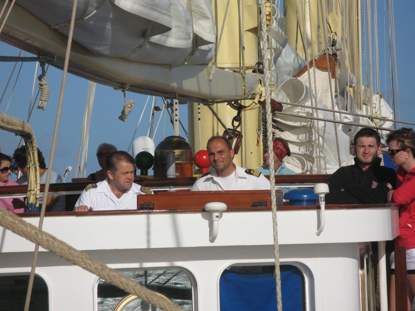 El trato con los oficiales y la tripulación ha sido cordial y fluido. Vicente se ha relacionado mucho con ellos, preguntando y consultando cosas de la navegación, incluso el jefe de máquinas le enseñó las tripas del velero.