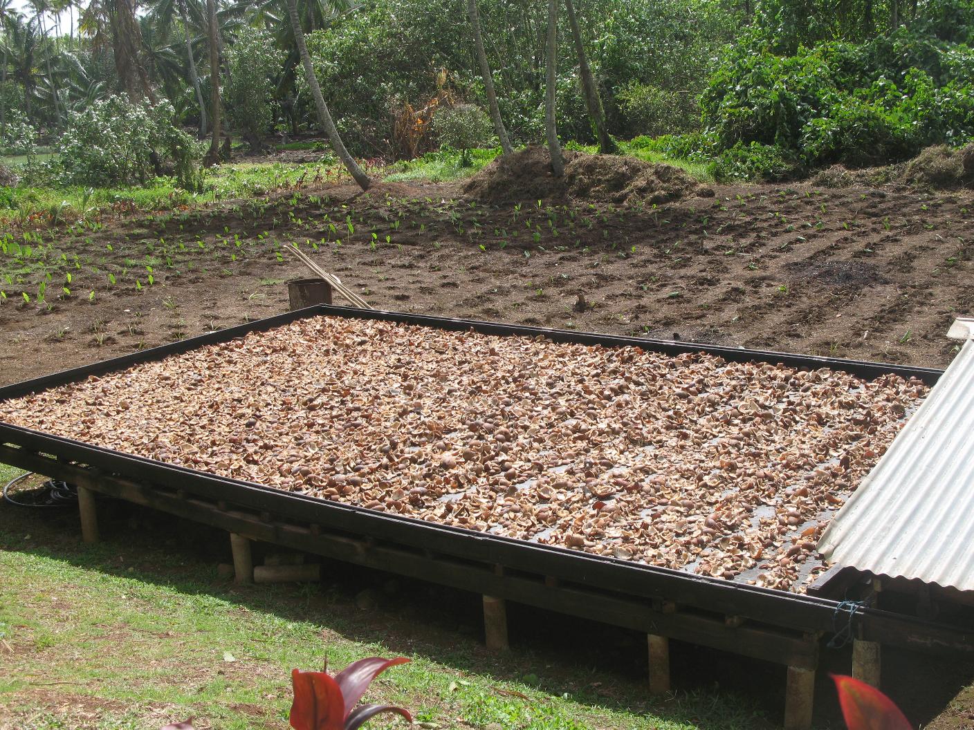 La Copra es la pulpa seca del coco. En la Polinesia hay cocoteros por castigo. Para la obtención de la copra se pela el coco, se le quita la cáscara y se abre por la mitad. Se deja secar un poco para poder extraer la pulpa troceándola, se extiende sobre unas superficies planas al aire libre y se cubre por las noches para que no coja humedad. Una vez seca la pulpa se lleva a las fábricas donde se hierve o se vaporiza, para obtener el aceite de coco. Con el aceite se fabrican jabones y es parte integrante de muchos productos cosméticos. También se utiliza en alimentación, margarinas, bollería, chocolate, leche en polvo, quesos...... etc. Los residuos de la obtención del aceite se emplean como pienso y alimento muy nutritivo para el ganado. Las fibras que recubren el coco se emplean en la fabricación de cepillos, en rellenos de tapicería o en la confección de felpudos. Las cáscaras se queman como leña o para hacer hogueras que ahuyenten los mosquitos e insectos de las plantaciones de otros productos.