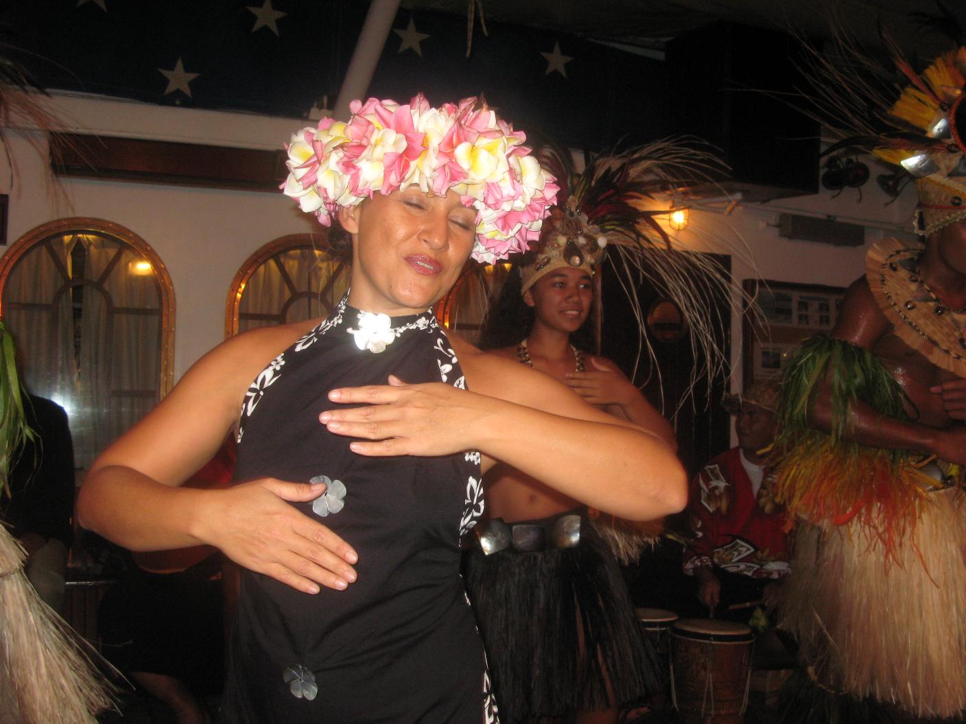 También utilizan para algunos bailes más lentos un pareo, vestimenta nacional, adornadas con coronas de flores en la cabeza.