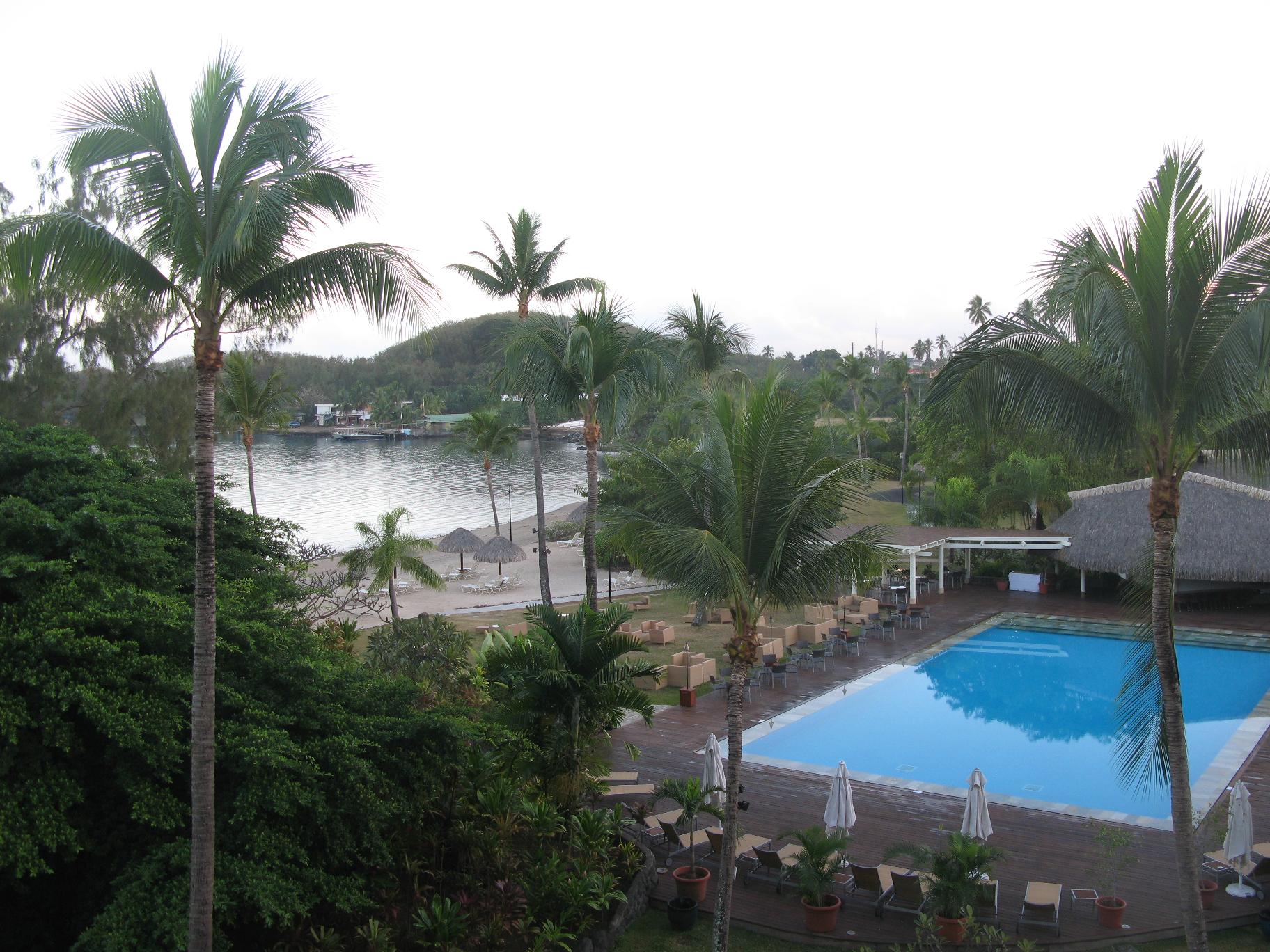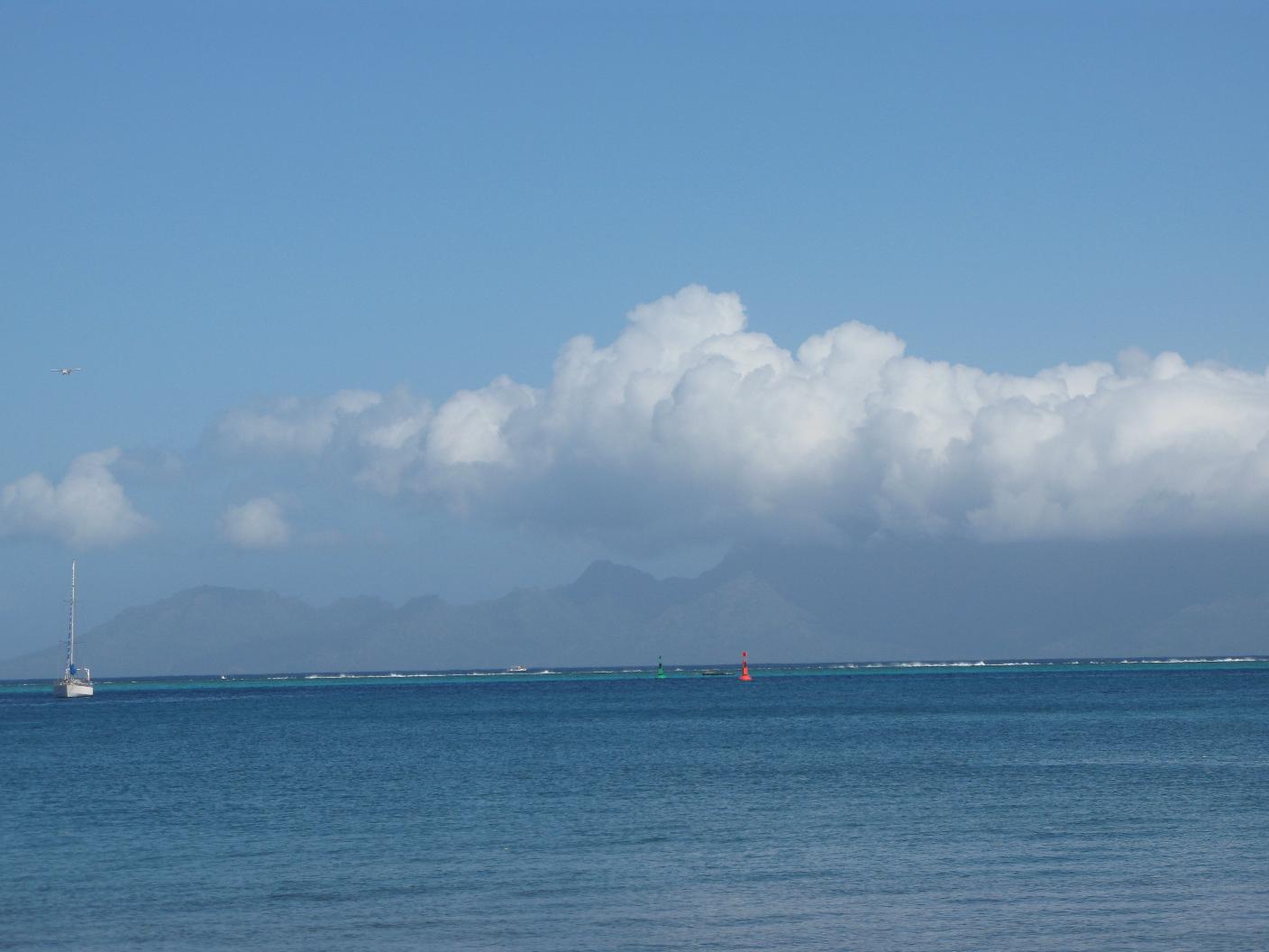 Subimos muy pronto al puente, a las 7 y seguimos encantados la navegación que es preciosa con Bora Bora a estribor, con sus clásicos perfiles. Navegamos por dentro del atolón rodeando la isla de Tahaa, que por lo que se ve es preciosa y tiene una vegetación exuberante. La intención era fondear cerca del Motu Mahaeva, al este de la isla. Pero las condiciones de viento iban empeorando y el capitán decidió dar la vuelta y ponernos a resguardo en el lado oeste de Tahaa. Por fin fondeamos en el centro del atolón, al noroeste de la isla, frente al lujoso y escondido Tahaa Pearl Resort. |