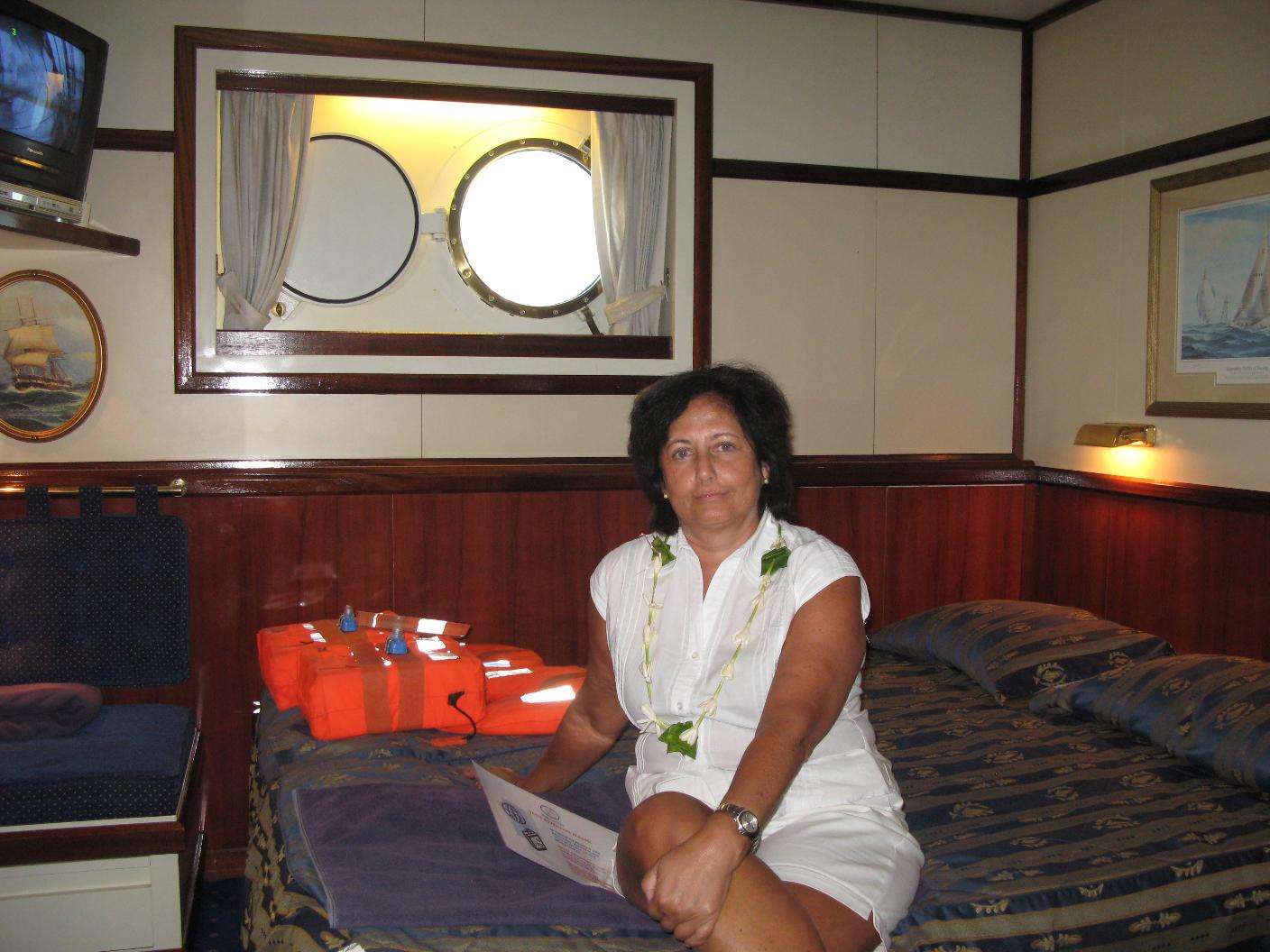 Nada más subir la escalerilla del barco nos colocan a los dos los consabidos collares de flores y hablando en español el director del crucero y el director del hotel. Nos vamos reuniendo todos en el centro del barco, donde hay instaladas unas mesas con canapés y pinchos de frutas como recepción. Vamos todos pasando por la Biblioteca del barco donde entregamos los pasaportes, realizamos la inscripción y nos entregan las llaves del camarote. Damos una vuelta por el barco y conocemos a nuestro camarero de la cabina, la cual nos enseña. Es bastante grande y bonita, con un cuarto de baño con ducha y una cama grande. Vicente aprovecha este rato para escudriñar todo lo que le gusta y enterarse de todo para contármelo. Nos pasan la hoja de actividades para mañana. Vamos a ver la primera puesta de sol desde el barco. Hacemos las primeras fotos del interior del barco, del camarote y del exterior. Subimos a la cubierta del Tropical Bar y el director del crucero, Federico, nos hace una presentación de lo que vamos a vivir en estos días, explicándonos las excursiones previstas y lo que teníamos que hacer para apuntarnos. También nos da unas normas de convivencia que se refieren a como ir vestido, la organización de las actividades diarias, horarios de comidas, etc. Después de la estupenda cena nos subimos a la cubierta tanto de proa como de popa para ver la salida del Star Flyer y el inicio de la navegación. El mar está, fuera del puerto, algo movido con bastante viento. Tras un ratito de ver la navegación nos acostamos. Mas fotos en Fotos Tahiti |