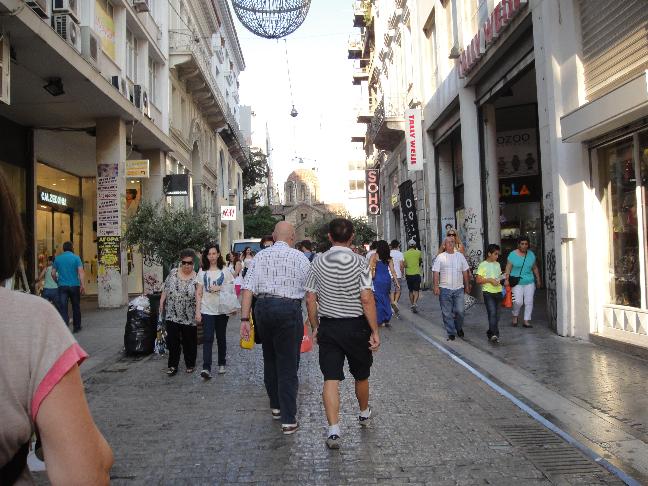Vamos bajando hasta la avenida frente a la Acrópolis. Hay bastantes pintores que venden sus cuadros por la calle. Hay una iglesia ortodoxa y entramos a verla.