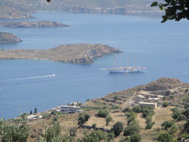 Desayunamos y llegamos a Patmos. Hoy anclamos en el centro de la pequeña bahía frente al puerto de Scala de la isla.