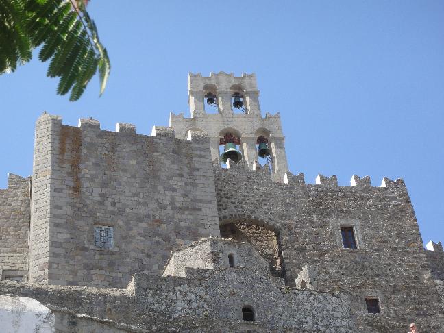 Al beato Christodulos se le donó la isla y comenzó en 1090 la construcción de una fortaleza bizantina con unos muros muy macizos almenados de 15 metros de altura, frente al ataque de los turcos. Murió en 1093 y dejó encargado a los doce monjes que allí vivían que terminaran la obra.