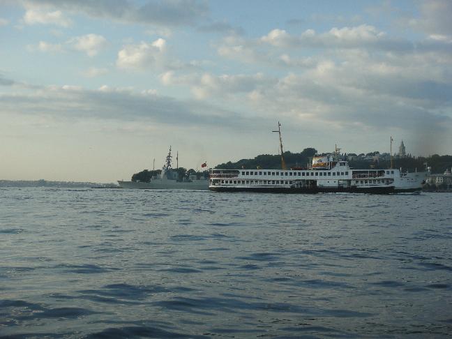 En las orillas se ven pequeños puertos, muelles, barcos amarrados, restaurantes, bonitas urbanizaciones con casas magníficas, sobre todo en el lado asiático y un continuo ir y venir de barcos, incluso tres de la marina turca.